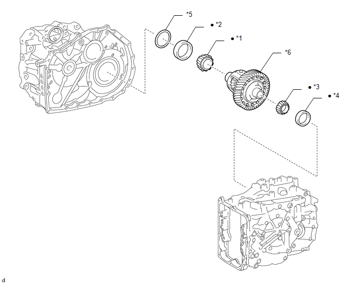 | *1 | FRONT DIFFERENTIAL CASE FRONT TAPERED ROLLER BEARING (INNER RACE) | *2 | FRONT DIFFERENTIAL CASE FRONT TAPERED ROLLER BEARING (OUTER RACE) |