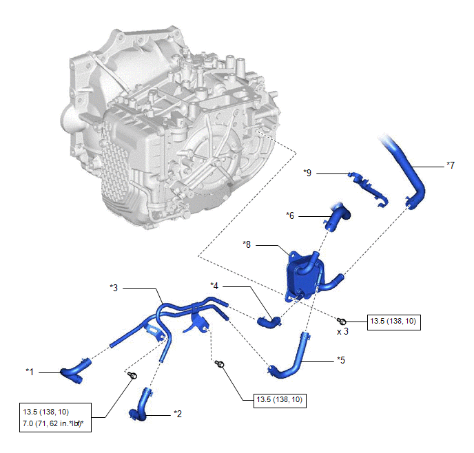 | *7 | WATER BY-PASS HOSE ASSEMBLY | *8 | TRANSMISSION OIL COOLER |