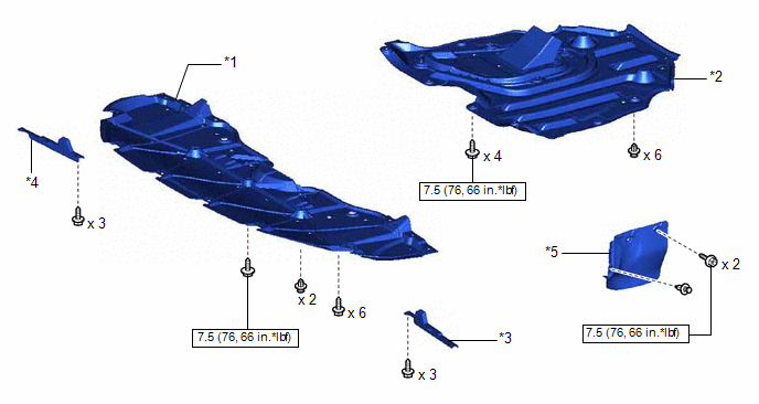 | *1 | NO. 1 ENGINE UNDER COVER | *2 | NO. 2 ENGINE UNDER COVER ASSEMBLY |
