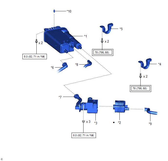 | *1 | CANISTER (CHARCOAL CANISTER ASSEMBLY) | *2 | LEAK DETECTION PUMP SUB-ASSEMBLY |