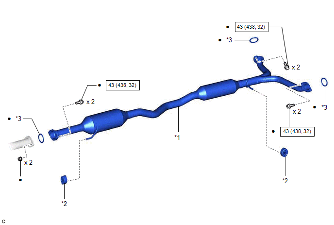 | *1 | CENTER EXHAUST PIPE ASSEMBLY | *2 | EXHAUST PIPE SUPPORT |