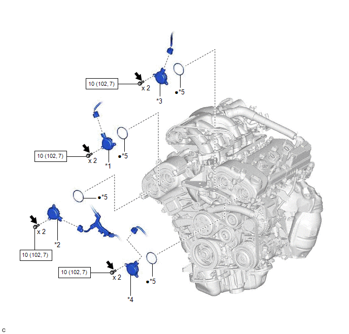 | *3 | CAMSHAFT TIMING OIL CONTROL SOLENOID ASSEMBLY (for Intake Side of Bank 2) | *4 | CAMSHAFT TIMING OIL CONTROL SOLENOID ASSEMBLY (for Exhaust Side of Bank 2) |