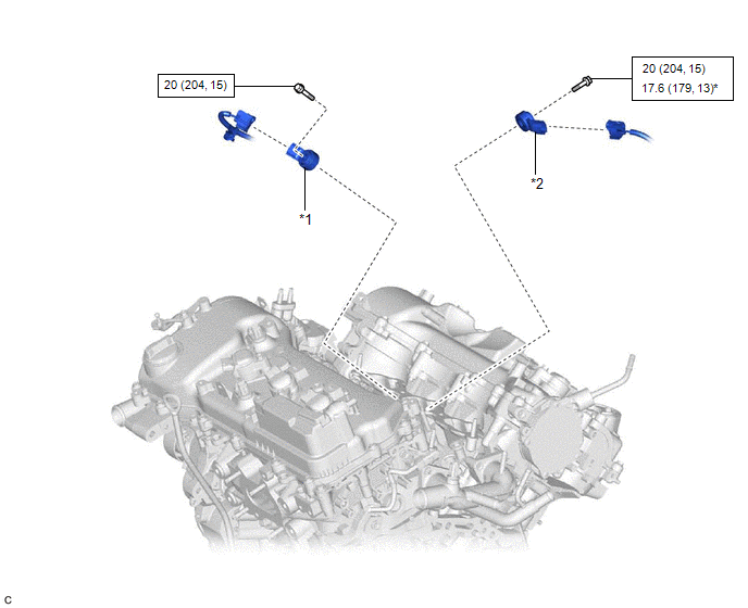 | *1 | KNOCK CONTROL SENSOR (for Bank 1) | *2 | KNOCK CONTROL SENSOR (for Bank 2) |