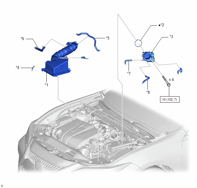 | *3 | THROTTLE BODY WITH MOTOR ASSEMBLY | *4 | VACUUM HOSE |