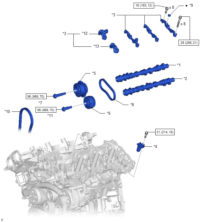 | *13 | NO. 4 CAMSHAFT BEARING CAP | - | - |