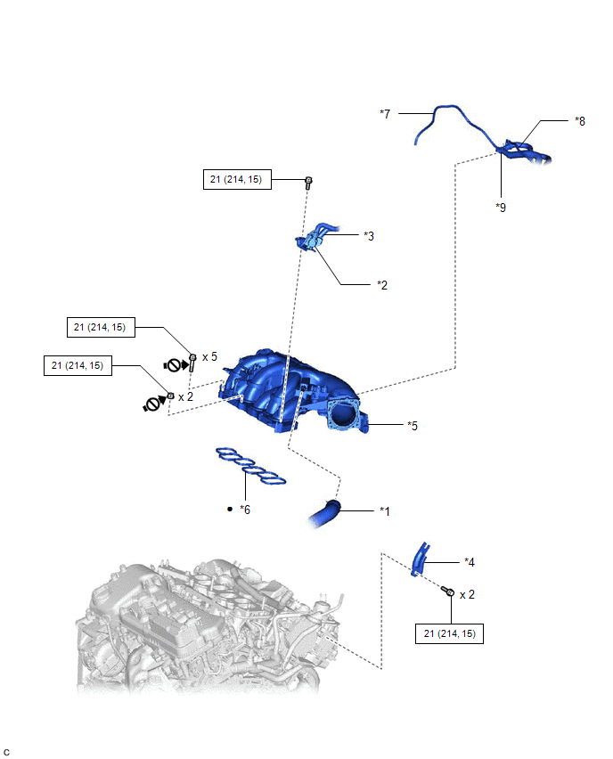 | *5 | INTAKE AIR SURGE TANK ASSEMBLY | *6 | AIR SURGE TANK TO INTAKE MANIFOLD GASKET |