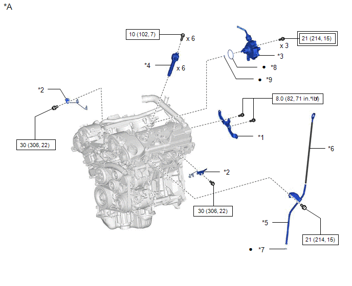 | *7 | ENGINE OIL LEVEL DIPSTICK GUIDE O-RING | *8 | NO. 2 O-RING |