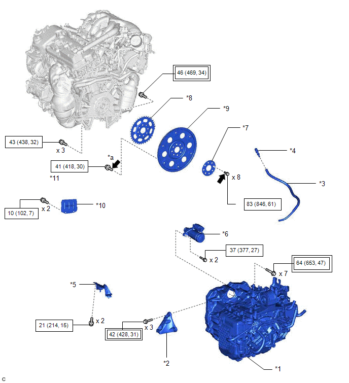 | *9 | DRIVE PLATE AND RING GEAR SUB-ASSEMBLY | *10 | FLYWHEEL HOUSING UNDER COVER |