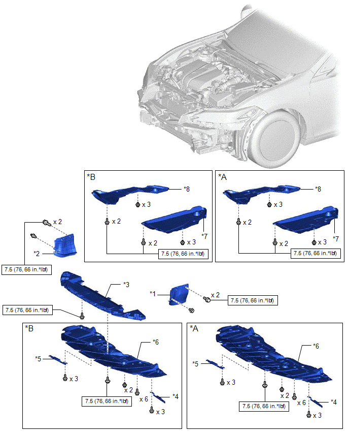 | *7 | NO. 3 ENGINE UNDER COVER | *8 | NO. 2 ENGINE UNDER COVER |