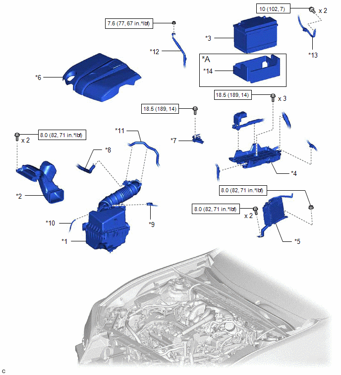 | *7 | NO. 2 BATTERY CLAMP | *8 | NO. 2 VENTILATION HOSE |