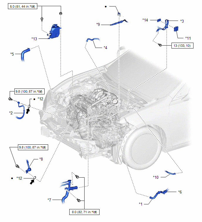 | *13 | RADIATOR RESERVE TANK ASSEMBLY | *14 | NO. 2 FUEL PIPE CLAMP |
