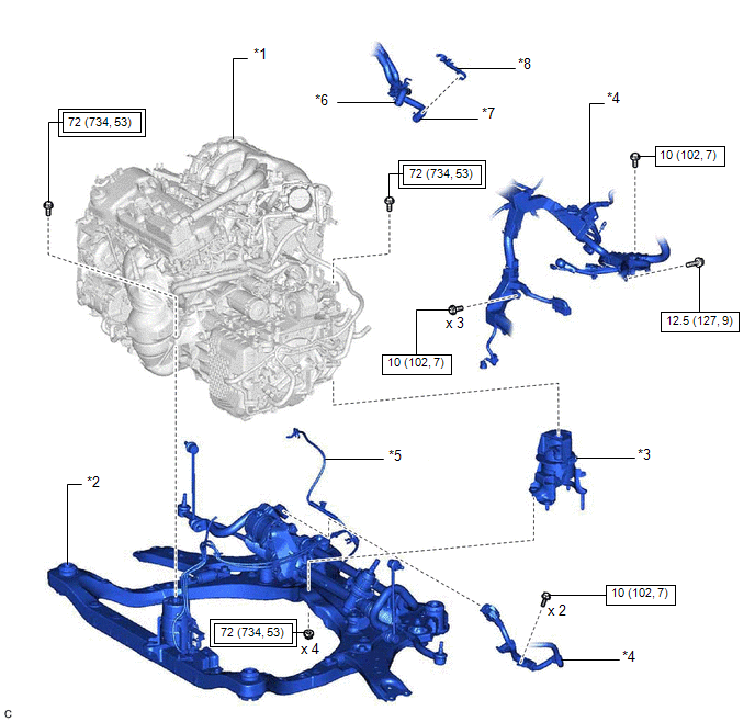 | *7 | FRONT FRAME ASSEMBLY | *8 | ENGINE MOUNTING INSULATOR LH |
