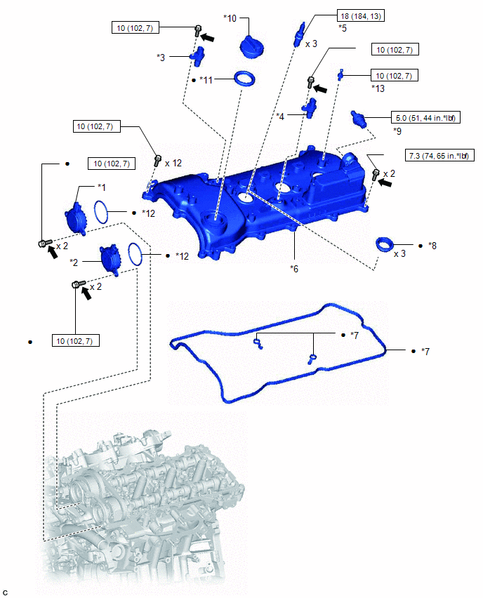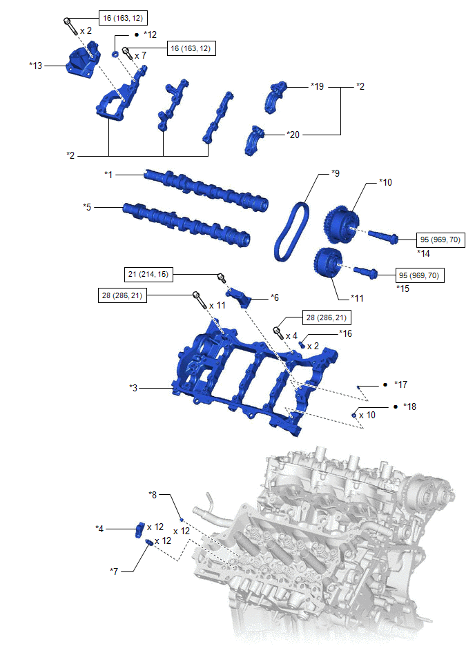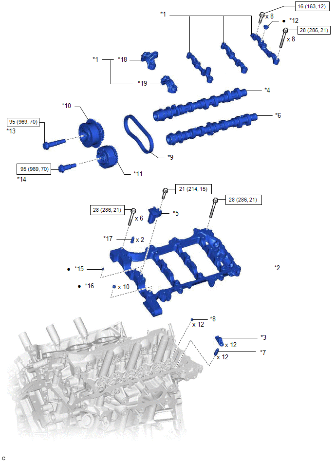 | *11 | CAMSHAFT TIMING EXHAUST GEAR ASSEMBLY (for Bank 1) | *12 | CAMSHAFT BEARING CAP OIL HOLE GASKET |