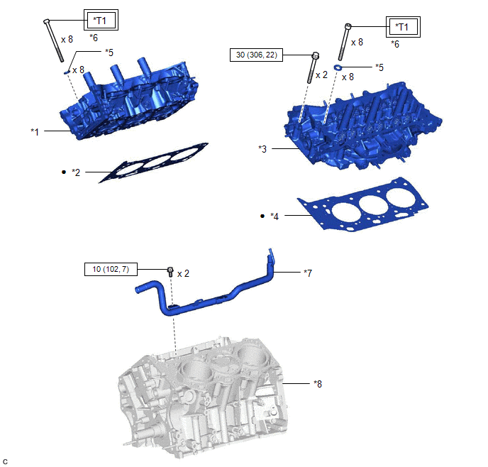 | *7 | NO. 2 CHAIN VIBRATION DAMPER | *8 | NO. 1 IDLE GEAR SHAFT |