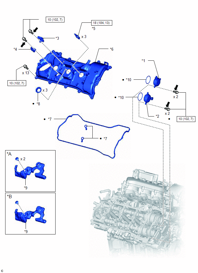 | *9 | PCV VALVE (VENTILATION VALVE SUB-ASSEMBLY) | *10 | OIL FILLER CAP SUB-ASSEMBLY |
