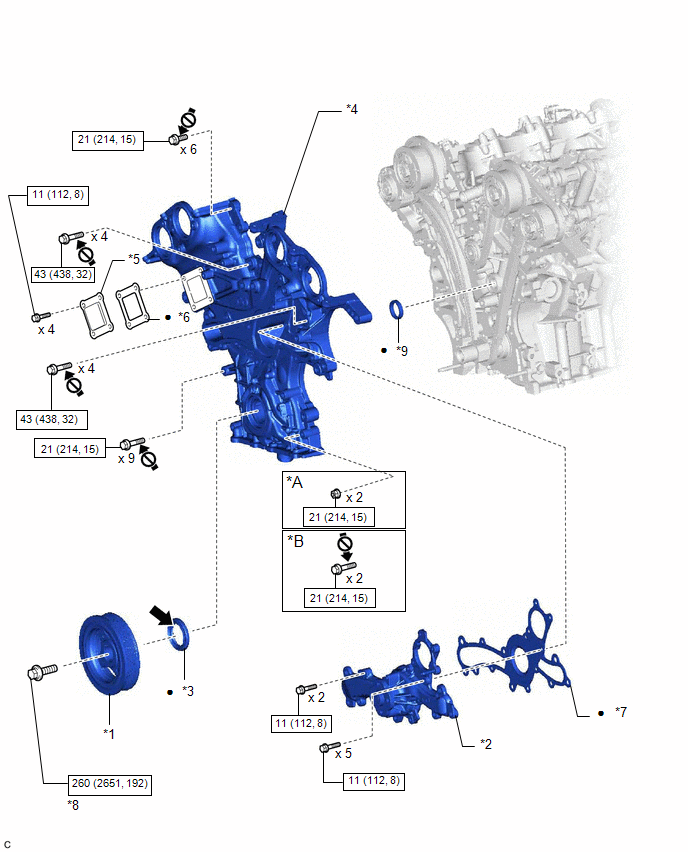 | *3 | TIMING CHAIN CASE OIL SEAL | *4 | TIMING CHAIN COVER ASSEMBLY |