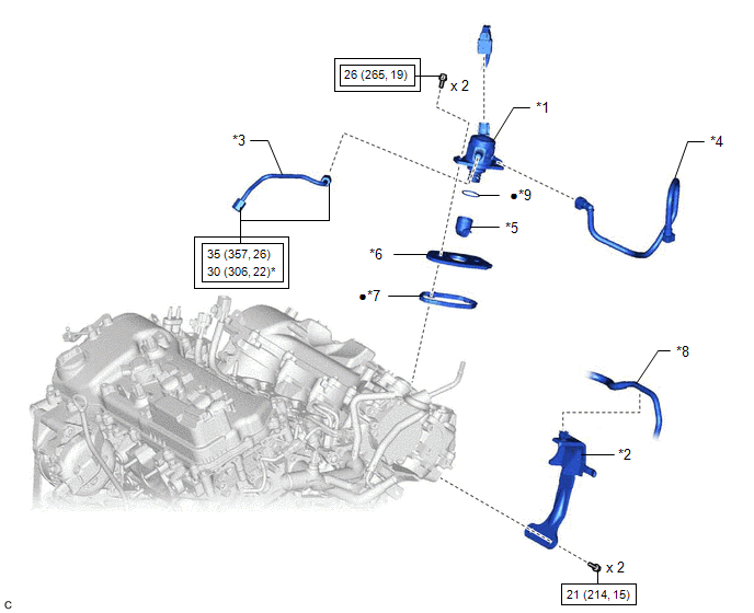 | *7 | FUEL PUMP SPACER GASKET | *8 | FUEL TUBE SUB-ASSEMBLY |