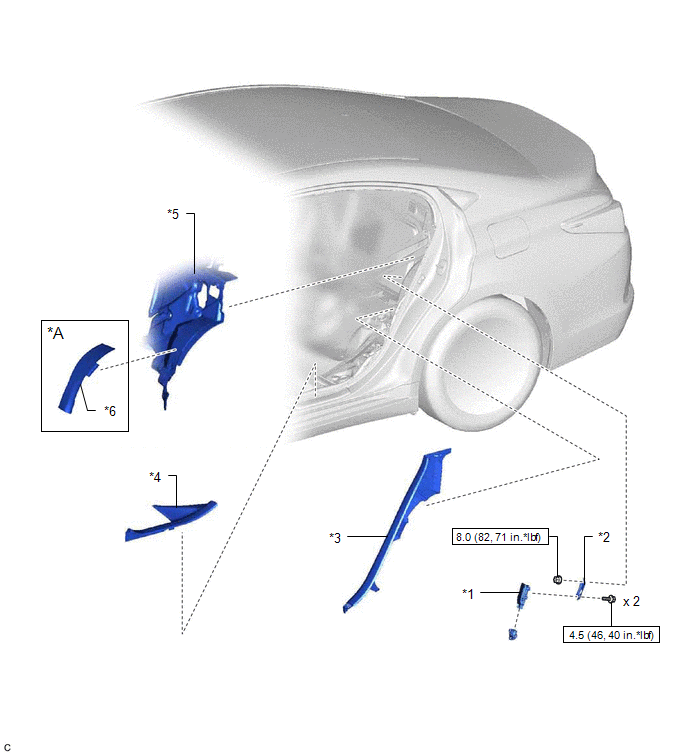 | *3 | REAR SEAT SIDE GARNISH LH | *4 | REAR DOOR SCUFF PLATE LH |