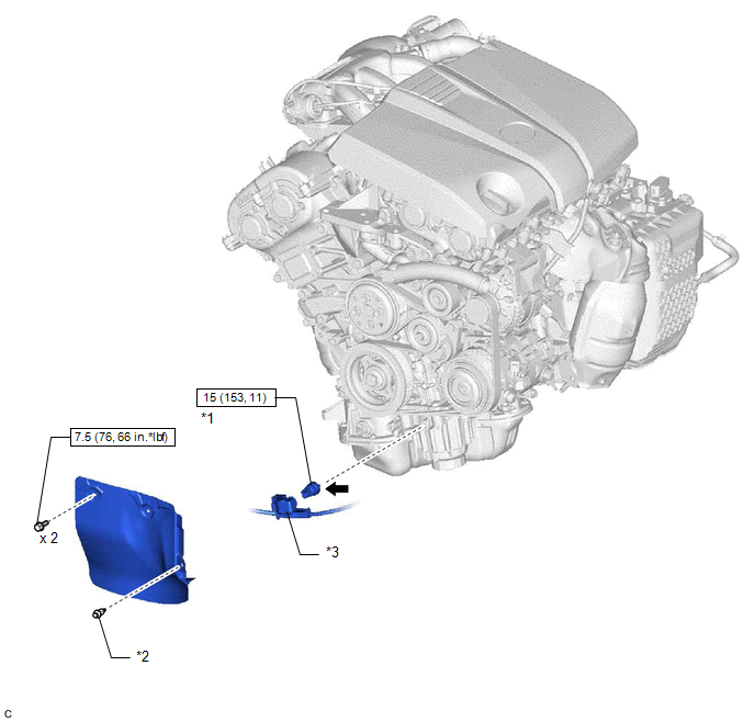 | *1 | ENGINE OIL PRESSURE SWITCH ASSEMBLY | *2 | FRONT FENDER APRON SEAL RH |