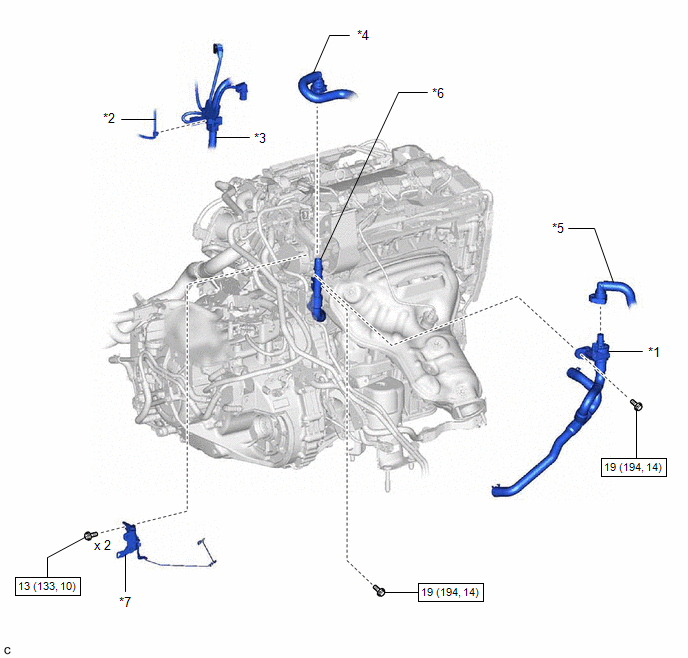 | *5 | INLET HEATER HOSE | *6 | NO. 2 WATER BY-PASS PIPE SUB-ASSEMBLY |