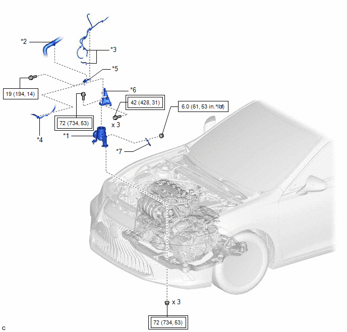 | *5 | NO. 1 RADIATOR BRACKET | *6 | FRONT ENGINE MOUNTING BRACKET |