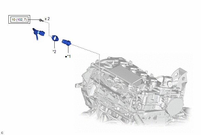 | *1 | FUEL PRESSURE SENSOR | *2 | NO. 1 FUEL PRESSURE SENSOR HOLDER |