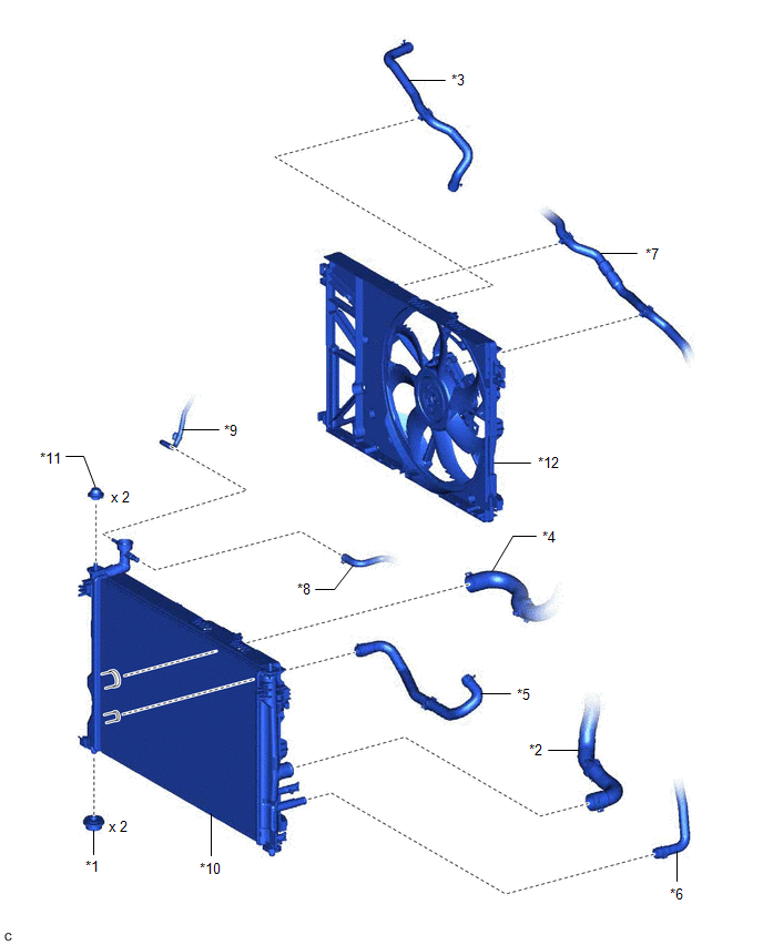 | *11 | RADIATOR SUPPORT CUSHION | *12 | FAN WITH MOTOR ASSEMBLY |
