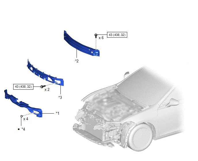 | *3 | UPPER RADIATOR MOUNTING BRACKET | *4 | UPPER RADIATOR SUPPORT SUB-ASSEMBLY |
