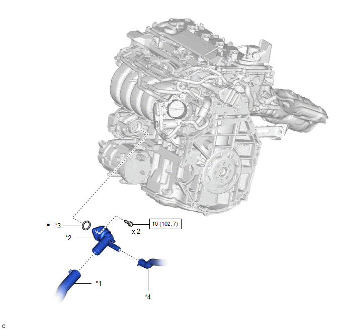 | *1 | NO. 2 RADIATOR HOSE | *2 | WATER INLET WITH THERMOSTAT SUB-ASSEMBLY |