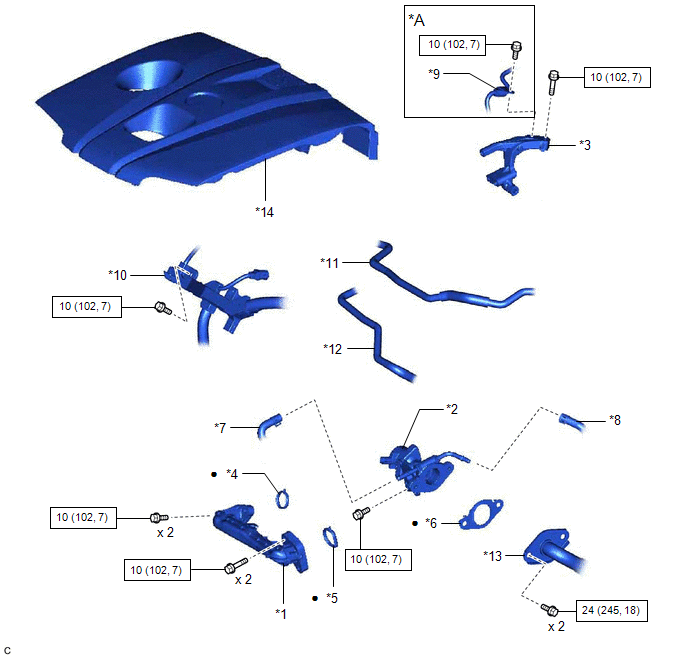| *13 | EGR COOLER ASSEMBLY | *14 | NO. 1 ENGINE COVER SUB-ASSEMBLY |