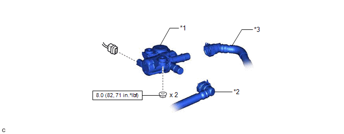 | *1 | FUEL VAPOR CONTAINMENT VALVE (FUEL TANK SOLENOID MAIN VALVE ASSEMBLY) | *2 | FUEL TANK VENT HOSE SUB-ASSEMBLY |