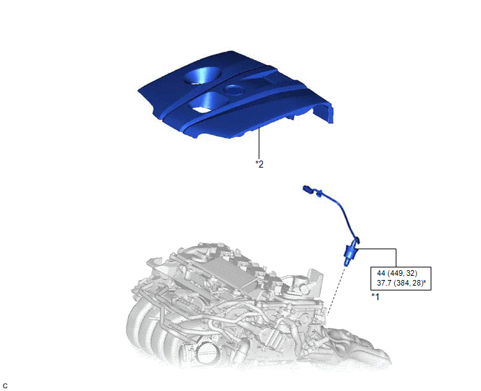 | *1 | AIR FUEL RATIO SENSOR | *2 | NO. 1 ENGINE COVER SUB-ASSEMBLY |