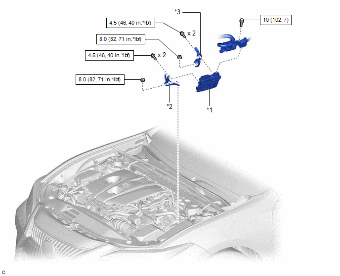 | *1 | ECM | *2 | NO. 1 ECM BRACKET |