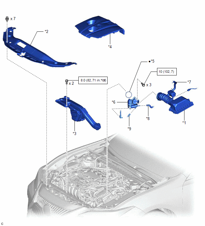 | *3 | INLET AIR CLEANER ASSEMBLY | *4 | NO. 1 ENGINE COVER SUB-ASSEMBLY |