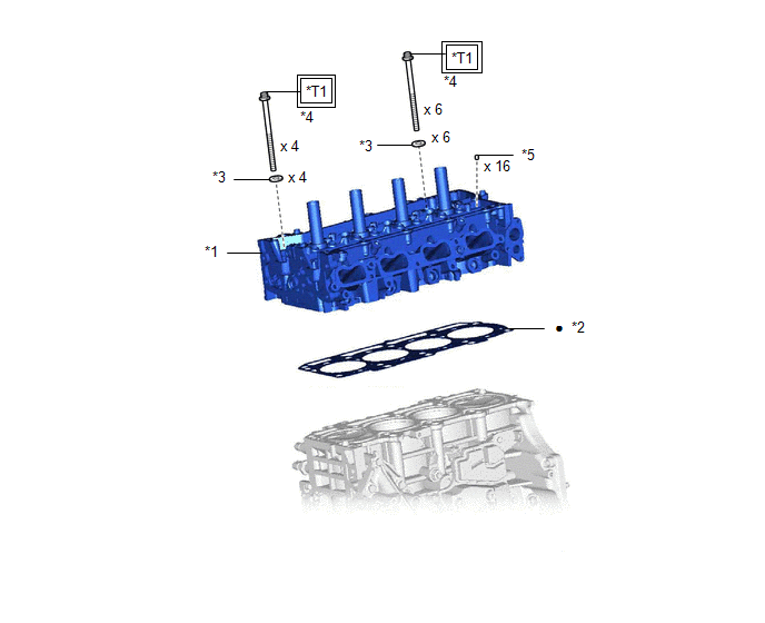 | *1 | CYLINDER HEAD SUB-ASSEMBLY | *2 | CYLINDER HEAD GASKET |