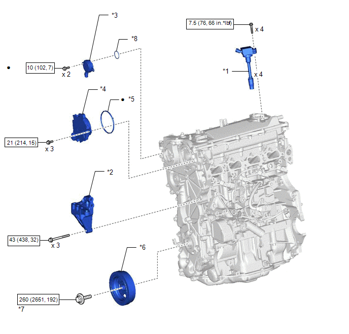 | *7 | TIMING CHAIN COVER ASSEMBLY | *8 | NO. 1 CHAIN TENSIONER ASSEMBLY |