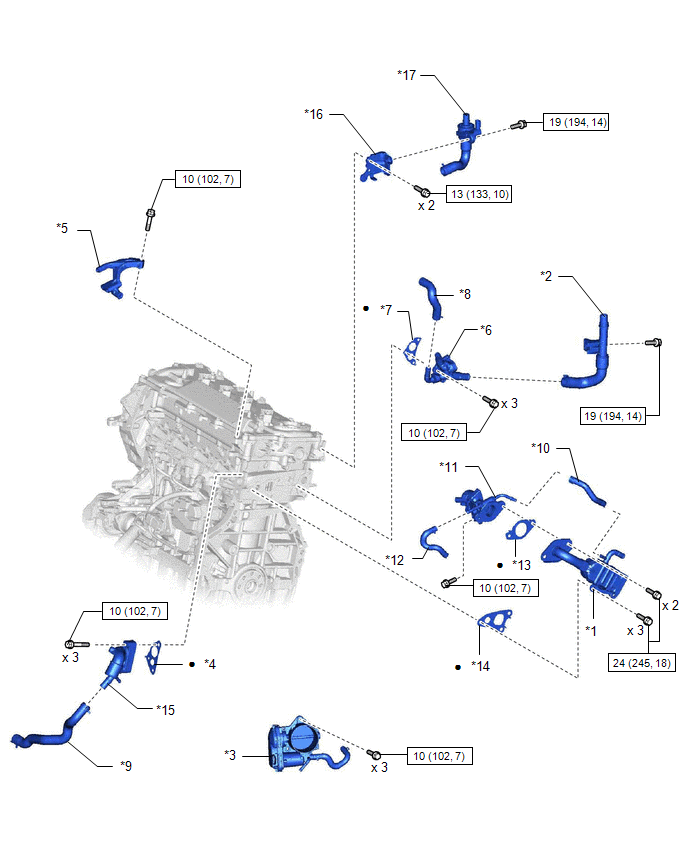 | *11 | EGR VALVE ASSEMBLY | *12 | NO. 8 WATER BY-PASS HOSE |