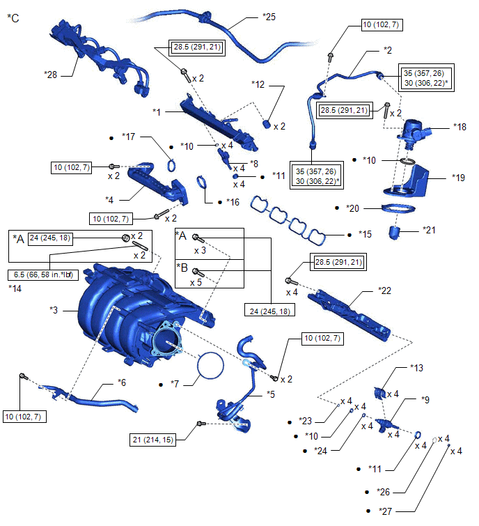 | *7 | THROTTLE BODY GASKET | *8 | PORT FUEL INJECTOR ASSEMBLY |