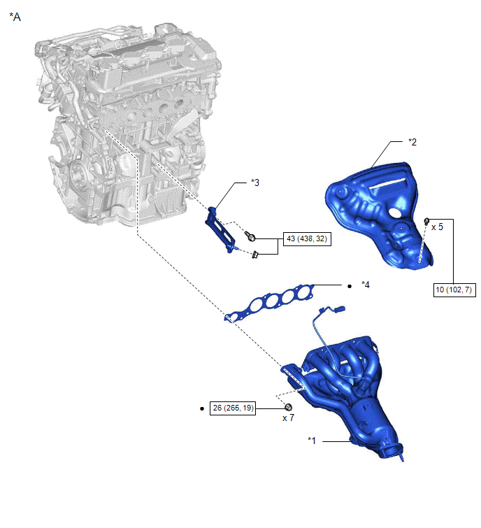 | *3 | MANIFOLD STAY | *4 | EXHAUST MANIFOLD TO HEAD GASKET |