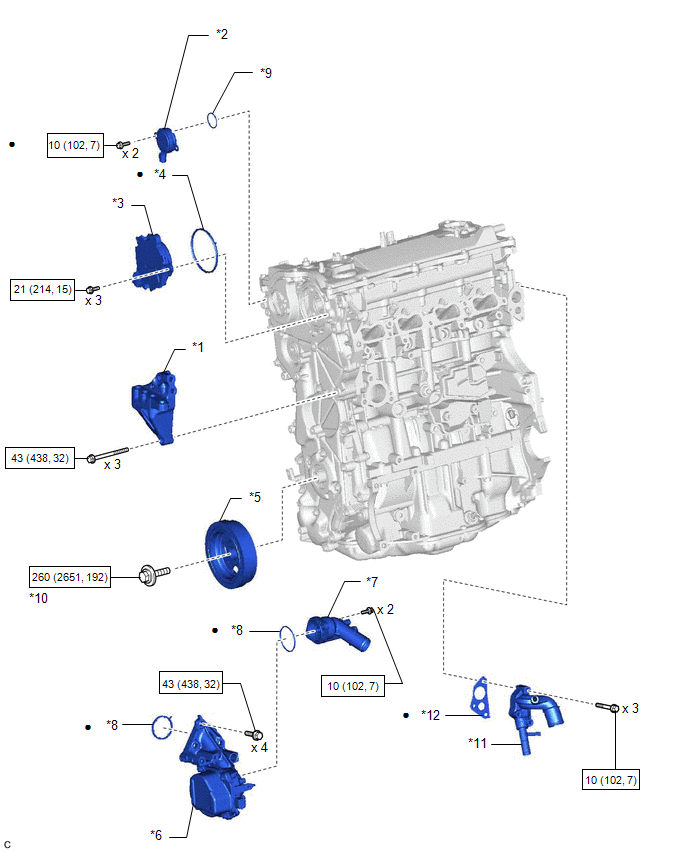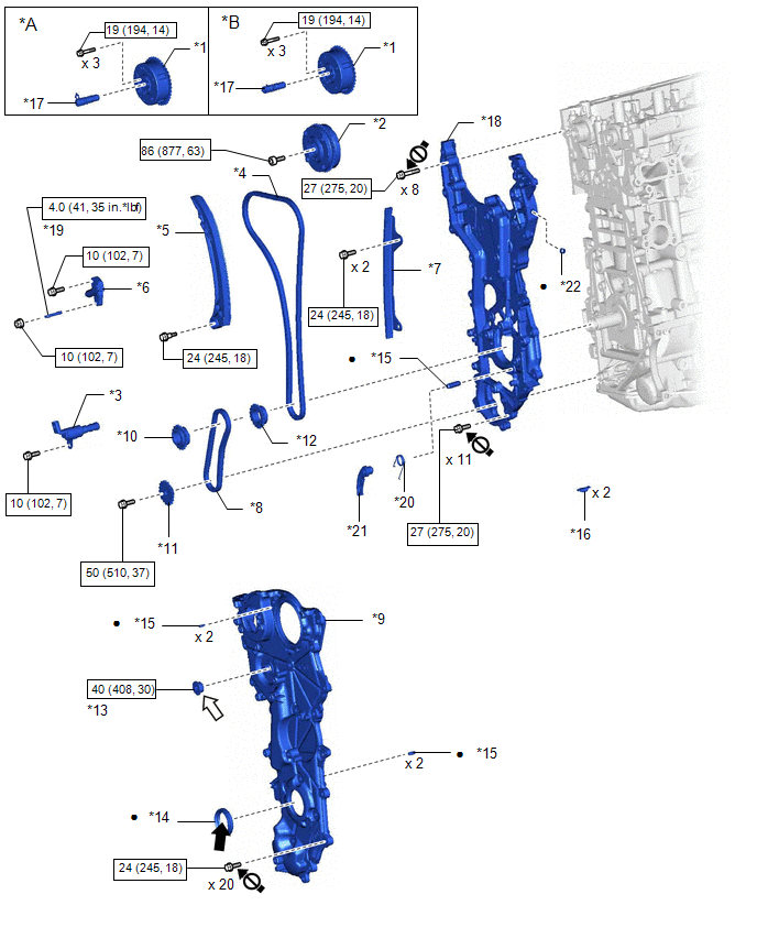 | *9 | NO. 2 TIMING CHAIN COVER ASSEMBLY | *10 | OIL PUMP DRIVE SPROCKET |