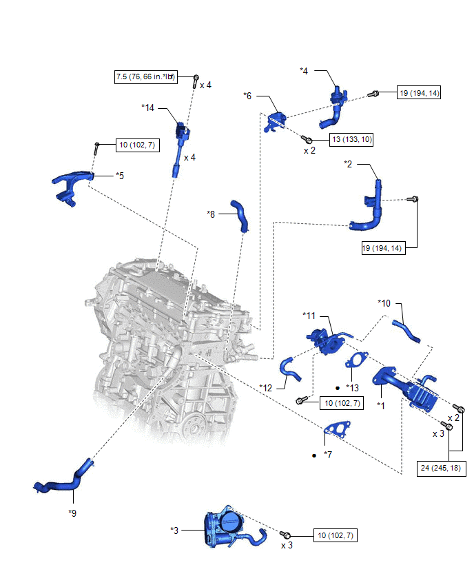 | *11 | EGR VALVE ASSEMBLY | *12 | NO. 8 WATER BY-PASS HOSE |