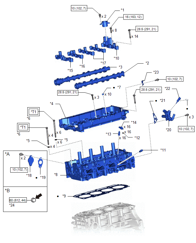 | *9 | CYLINDER HEAD GASKET | *10 | NO. 4 CAMSHAFT BEARING CAP |