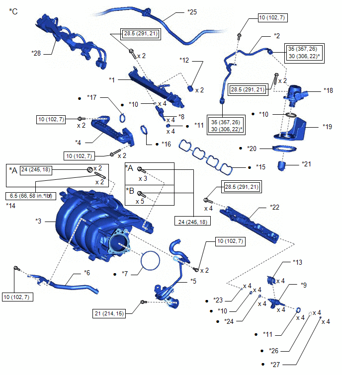 | *7 | THROTTLE BODY GASKET | *8 | PORT FUEL INJECTOR ASSEMBLY |