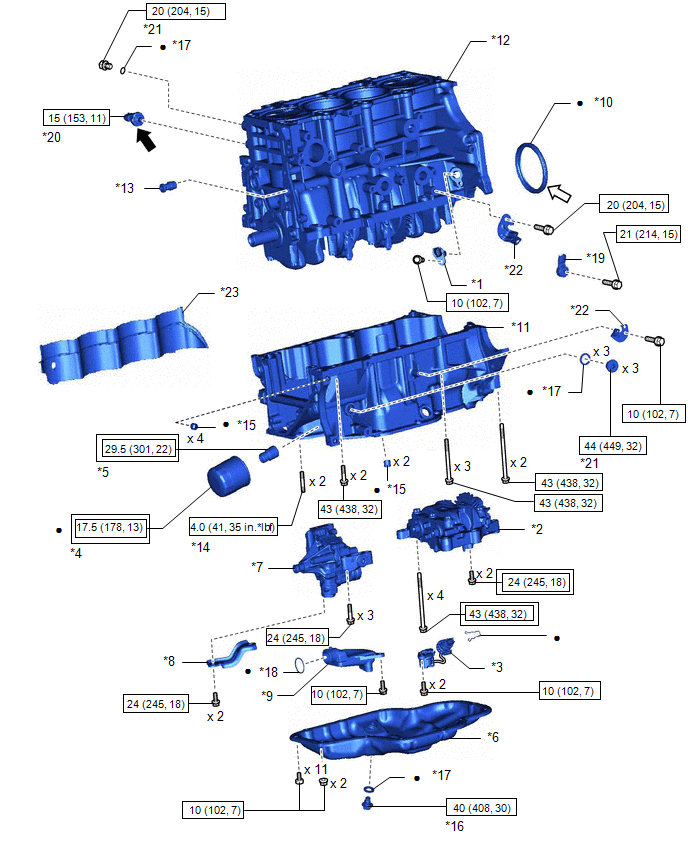 | *5 | OIL FILTER UNION | *6 | NO. 2 OIL PAN SUB-ASSEMBLY |