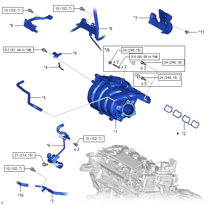 | *1 | INTAKE MANIFOLD | *2 | NO. 1 INTAKE MANIFOLD TO HEAD GASKET |