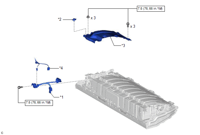 | *1 | ELECTRIC VEHICLE BATTERY PLUG ASSEMBLY | *2 | BATTERY COVER LOCK STRIKER |