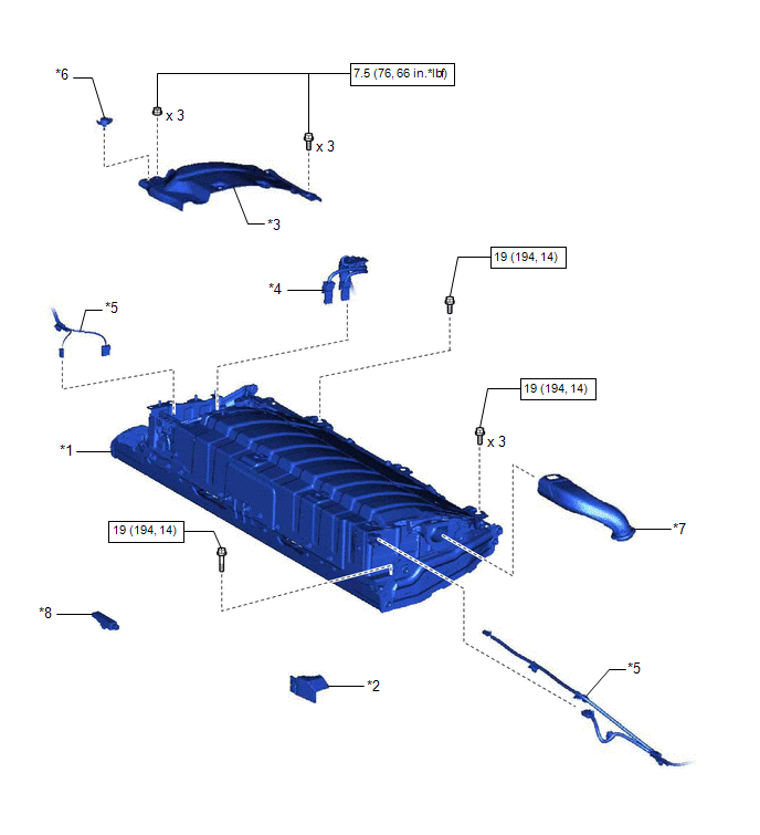 | *7 | HYBRID BATTERY HOSE ASSEMBLY | *8 | NO. 2 INDOOR ELECTRICAL KEY ANTENNA ASSEMBLY |