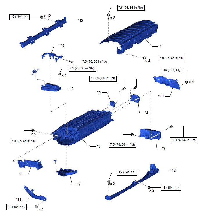 | *11 | NO. 3 HV BATTERY SHIELD SUB-ASSEMBLY | *12 | NO. 4 HV BATTERY END PLATE SUB-ASSEMBLY |