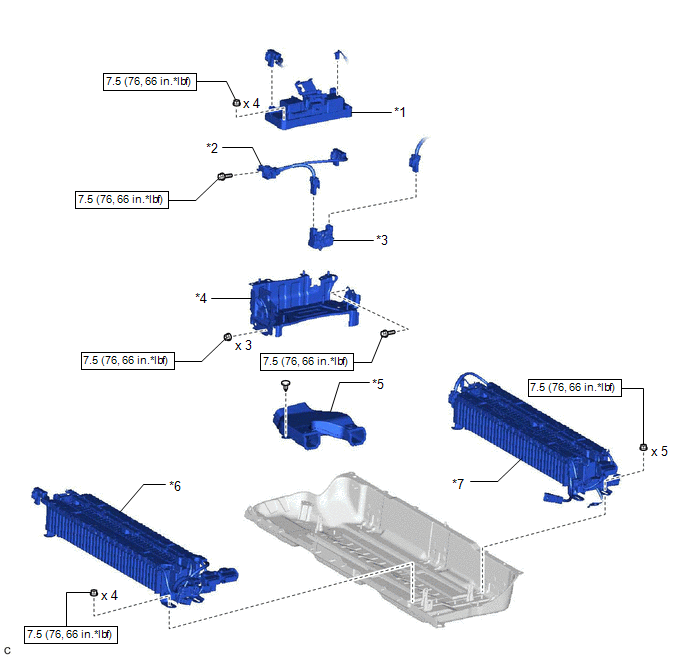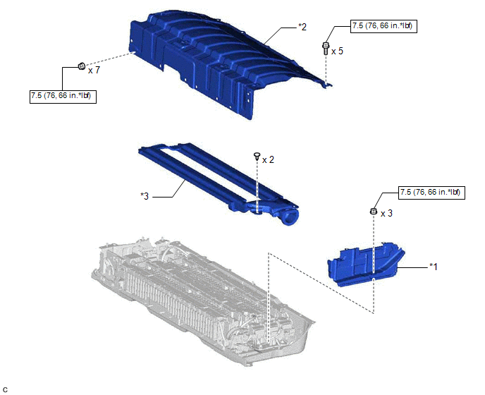 | *1 | BATTERY ECU ASSEMBLY | *2 | UPPER HV BATTERY COVER SUB-ASSEMBLY |