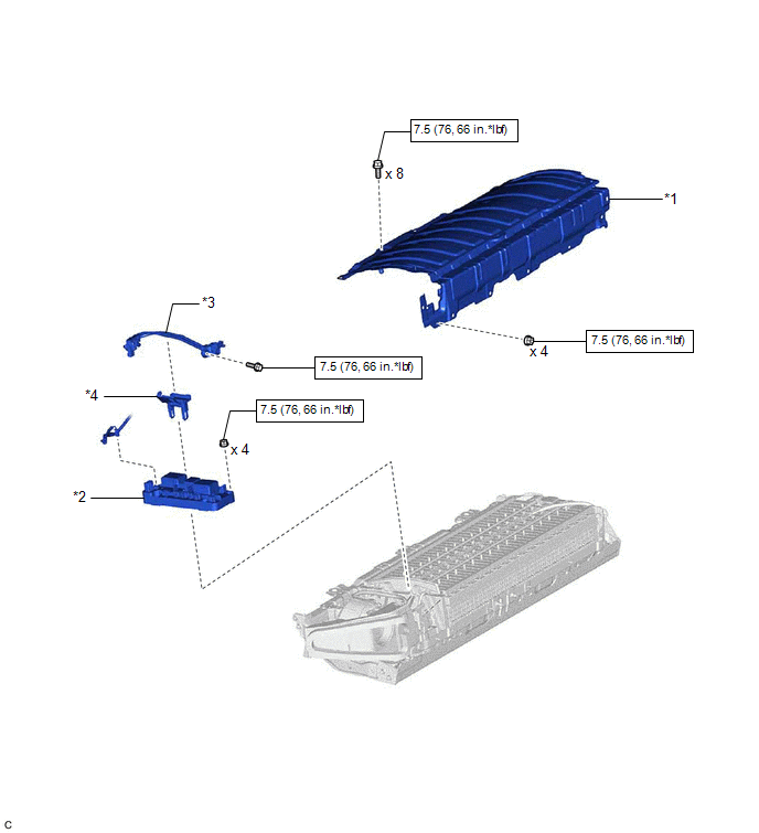 | *1 | BATTERY COVER LOCK STRIKER | *2 | NO. 1 HYBRID BATTERY EXHAUST DUCT |